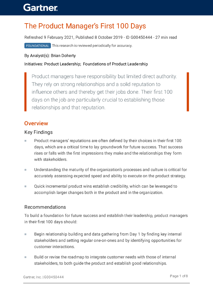 Gartner:2021年产品经理上任首个100天的行动指南报告(英文版).pdf