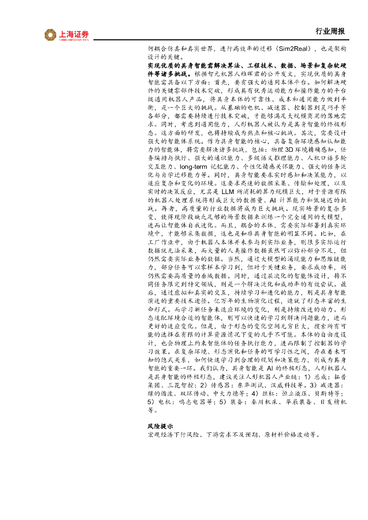 上海证券:人形机器人专题:具身智能是Al的终极形态,持续关注人形机器人产业链.pdf