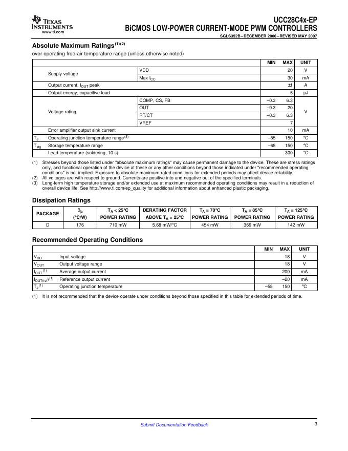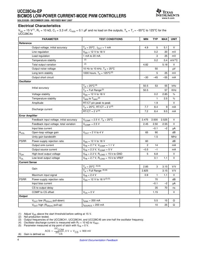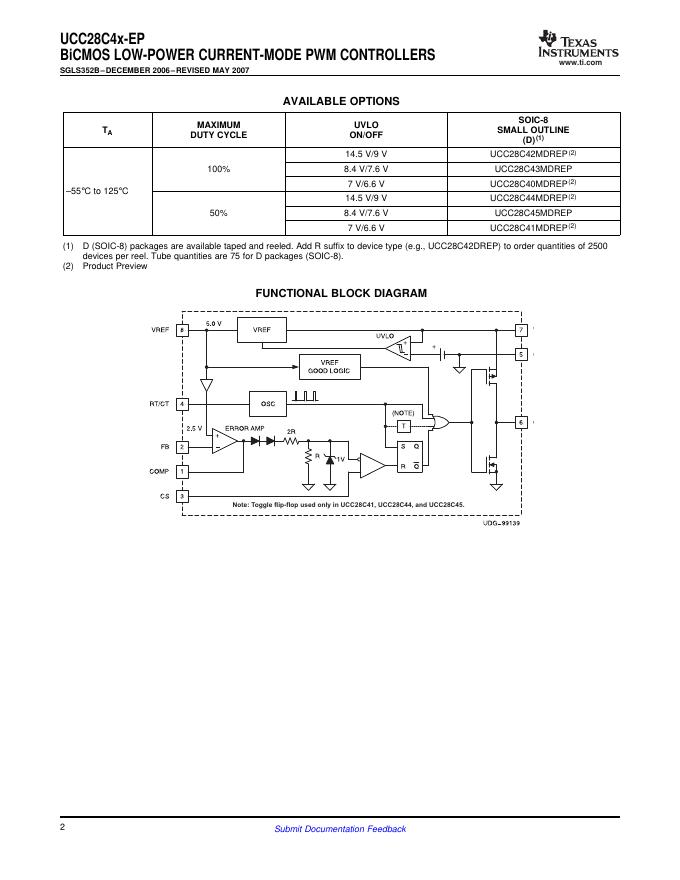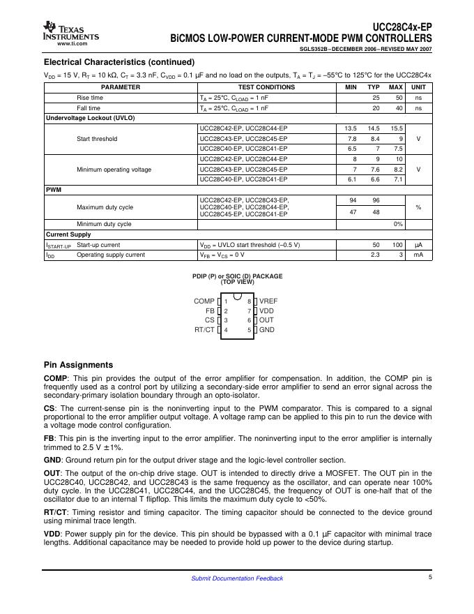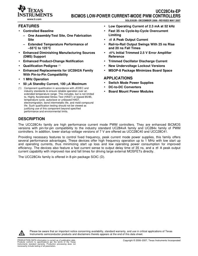 TEXAS INSTRUMENTS UCC28C4x-EP BiCMOS LOW-POWER CURRENT-MODE PWM CONTROLLERS 数据手册.pdf