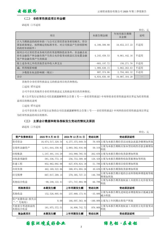 000807-云铝股份:2025年三季度报告.pdf