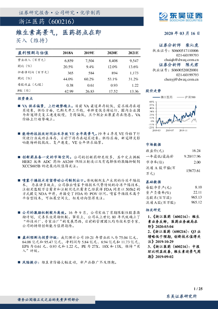 东吴证券:浙江医药(600216)-维生素高景气,医药拐点在即.pdf