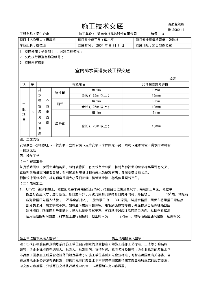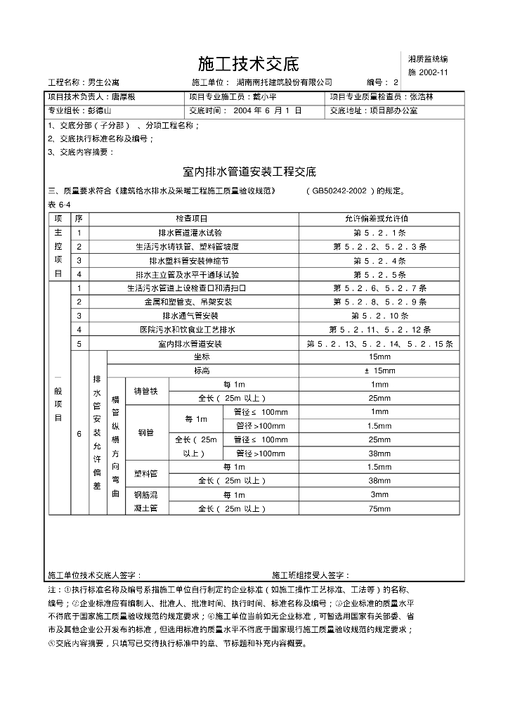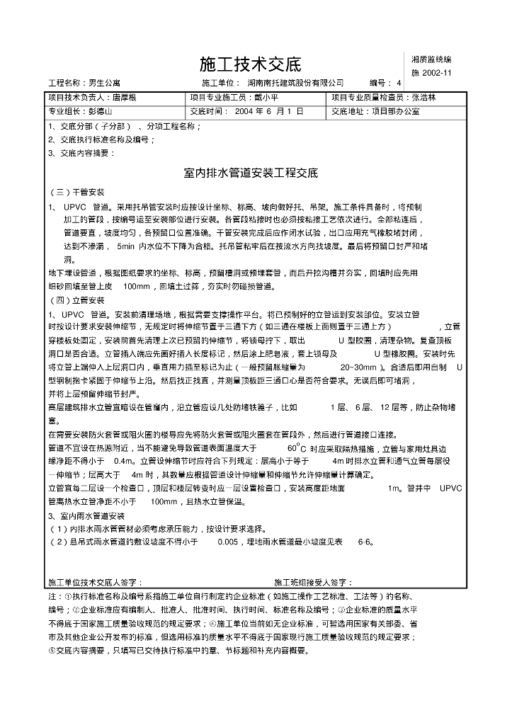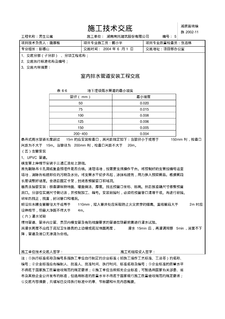 某集团公司男生宿舍专业室内排水管道安装工程技术交底.pdf