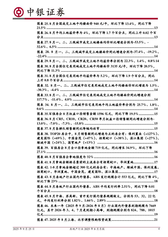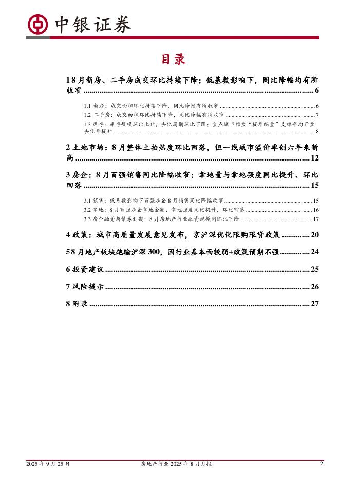 中银证券:房地产行业2025年8月月报:低基数影响下8月楼市成交同比降幅收窄;一线城市土拍溢价率创六年来新高.pdf
