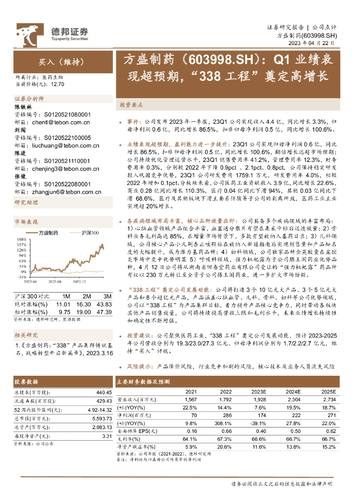 德邦证券:方盛制药(603998)-Q1业绩表现超预期,“338工程”奠定高增长.pdf