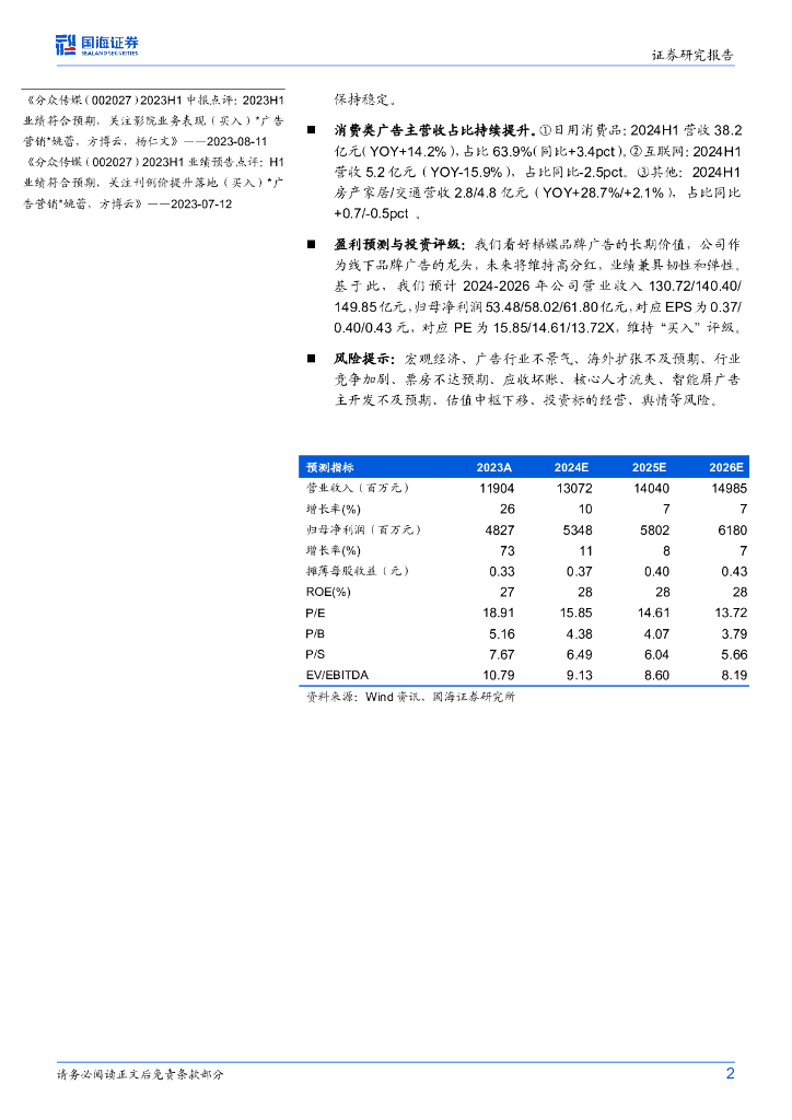 国海证券:分众传媒(002027)-2024H1业绩点评:2024H1业绩超预期,中期分红彰显信心.pdf