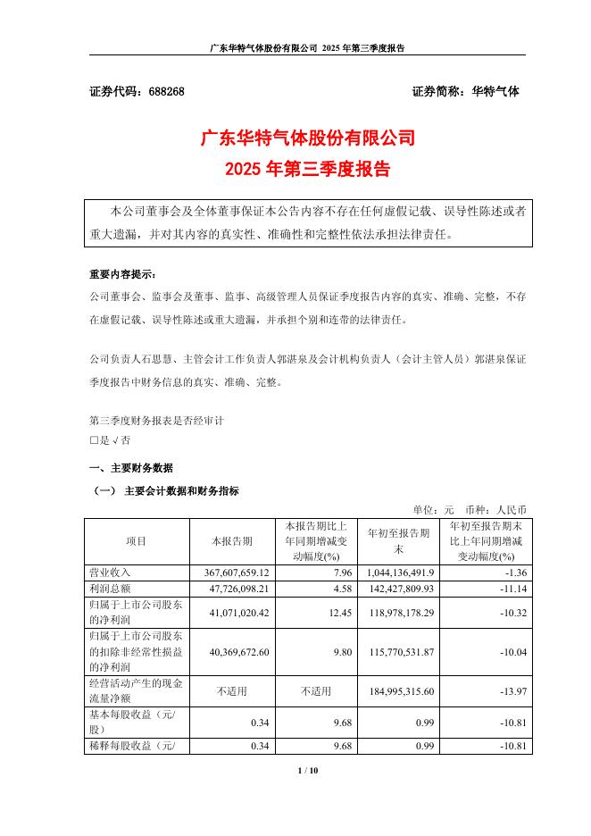 688268-华特气体:广东华特气体股份有限公司2025年第三季度报告.pdf