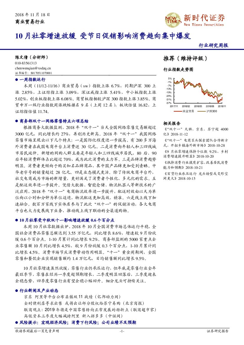 新时代证券:商贸零售行业周报:10月社零增速放缓,受节日促销影响消费趋向集中爆发.pdf
