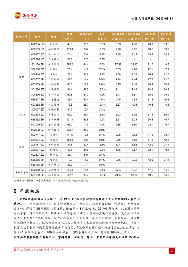 西南证券:机器人行业周报:2024世界机器人大会即将召开,预计亮相27款人形机器人整机.pdf