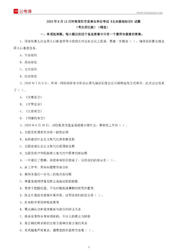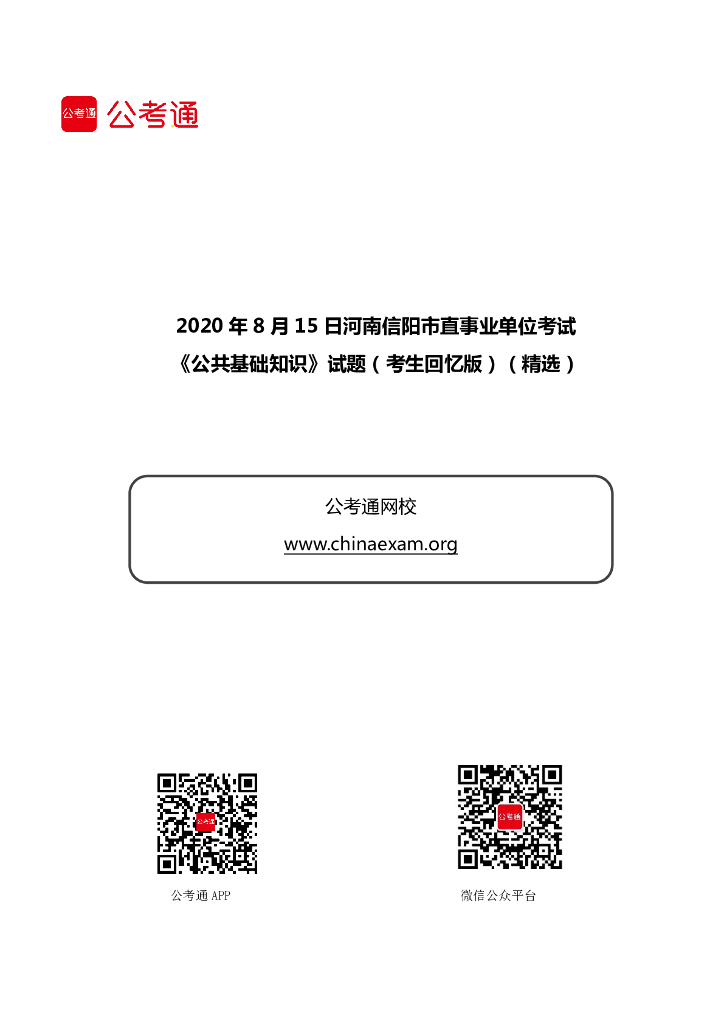 2020年8月15日河南信阳市直事业单位考试《公共基础知识》试题.pdf