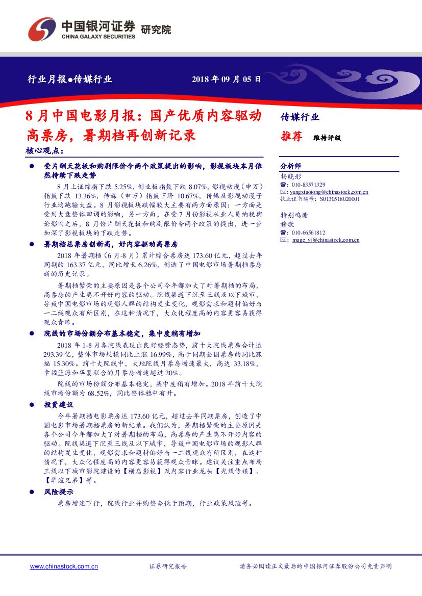 中国银河:传媒行业月报:8月中国电影月报:国产优质内容驱动高票房,暑期档再创新记录.pdf