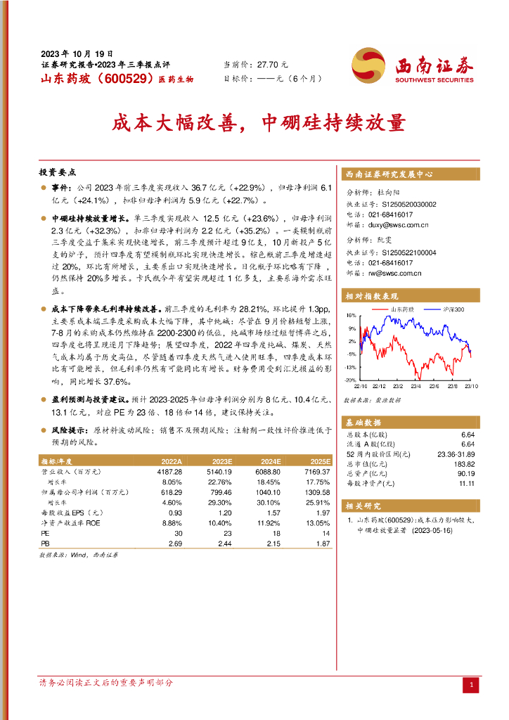西南证券:山东药玻(600529)-成本大幅改善,中硼硅持续放量.pdf