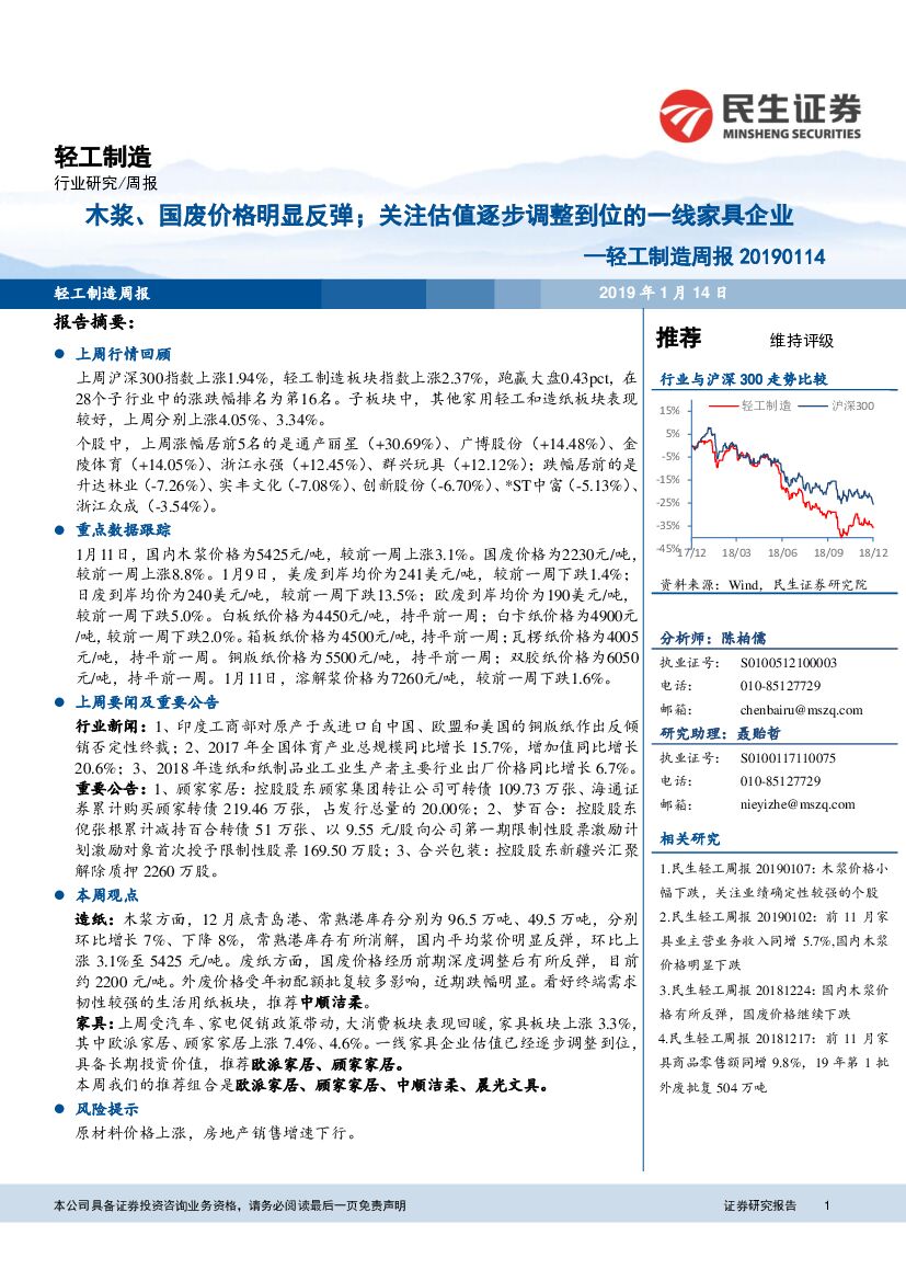 民生证券:轻工制造周报:木浆、国废价格明显反弹;关注估值逐步调整到位的一线家具企业.pdf