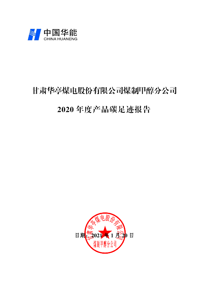 甘肃华亭煤电股份有限公司煤制甲醇分公司2020年度产品碳足迹报告.pdf
