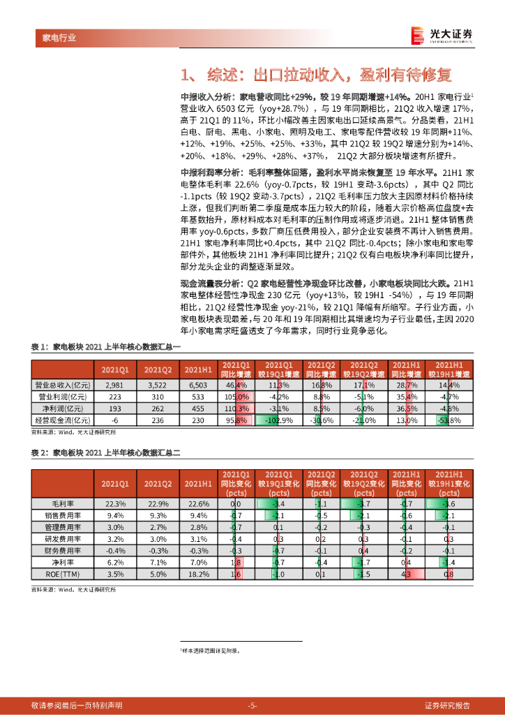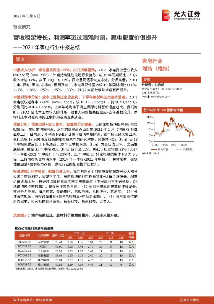 光大证券:2021年家电行业中报总结:营收稳定增长,利润率迈过艰难时刻,家电配置价值提升.pdf