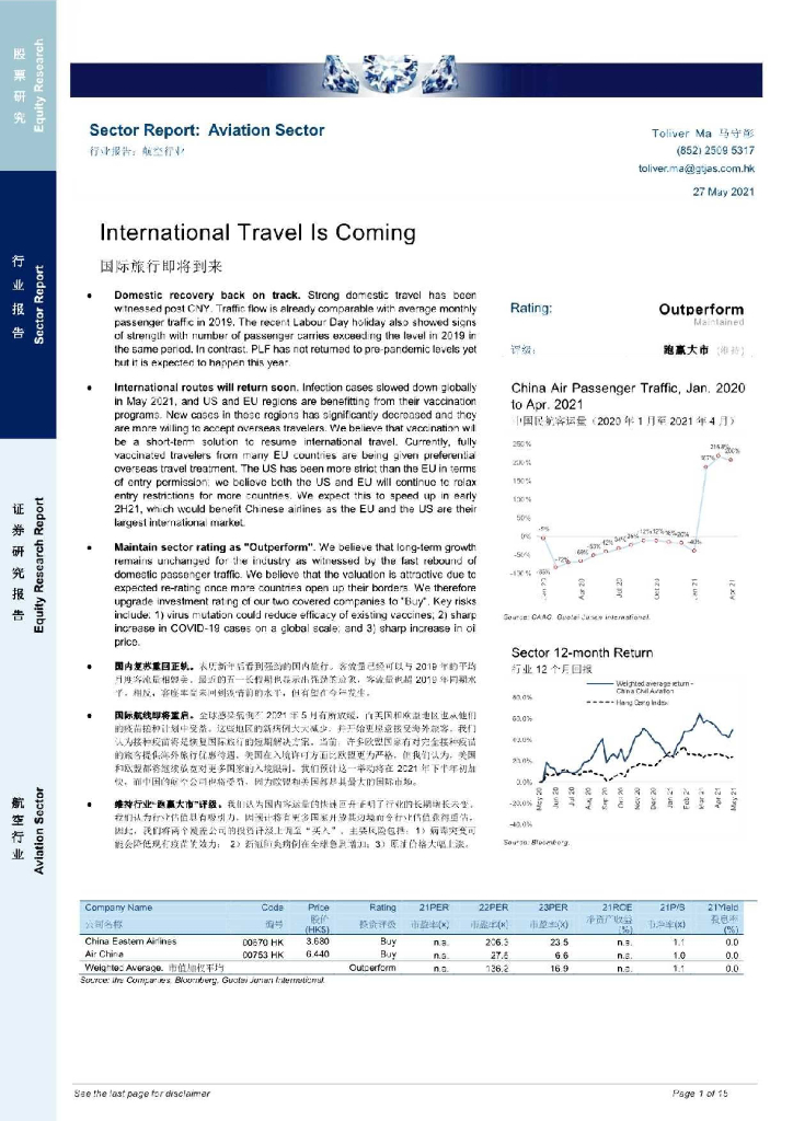 国泰君安证券(香港):航空行业:国际旅行即将到来.pdf