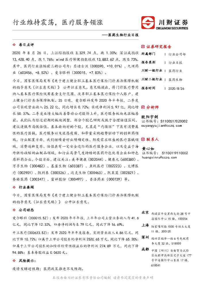 川财证券:医药生物行业日报:行业维持震荡,医疗服务领涨.pdf