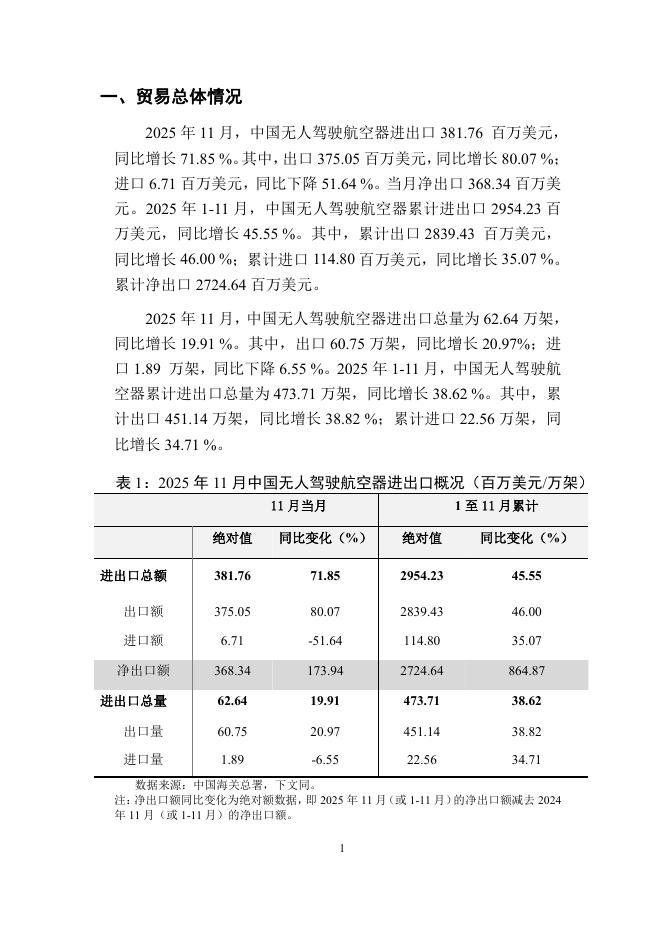 对外经济贸易大学:中国无人驾驶航空器贸易月度监测报告(2025年1-11月).pdf