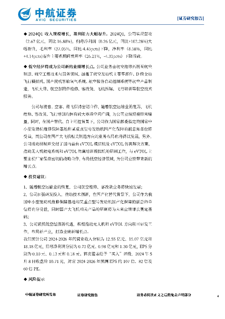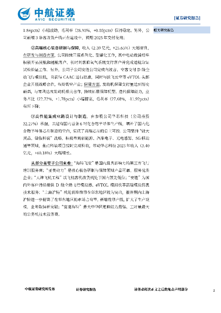 中航证券:海特高新(002023)-2023年报及2024年一季报点评:航空运输业复苏带动公司业绩提升,布局低空产业新赛道.pdf
