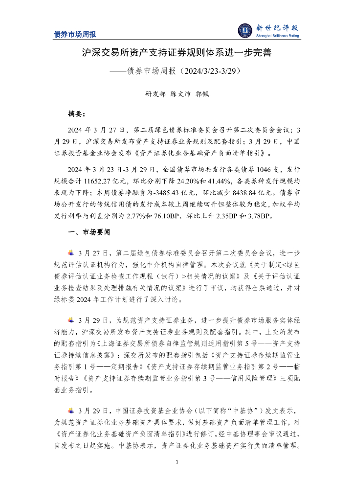 新世纪评级:沪深交易所资产支持证券规则体系进一步完善——债券市场周报(2024/3/23-3/29).pdf