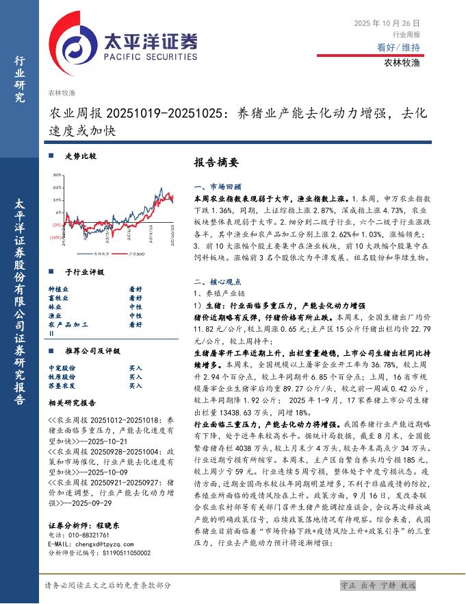 太平洋证券:农业周报:养猪业产能去化动力增强,去化速度或加快.pdf
