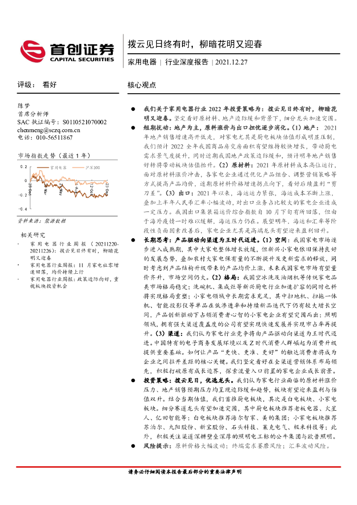 首创证券:家用电器行业深度报告:拨云见日终有时,柳暗花明又迎春.pdf