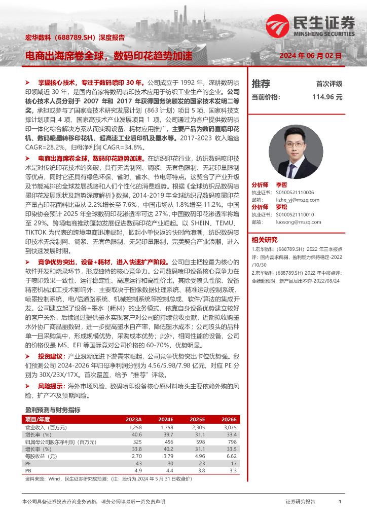 民生证券:宏华数科(688789)-深度报告:电商出海席卷全球,数码印花趋势加速.pdf