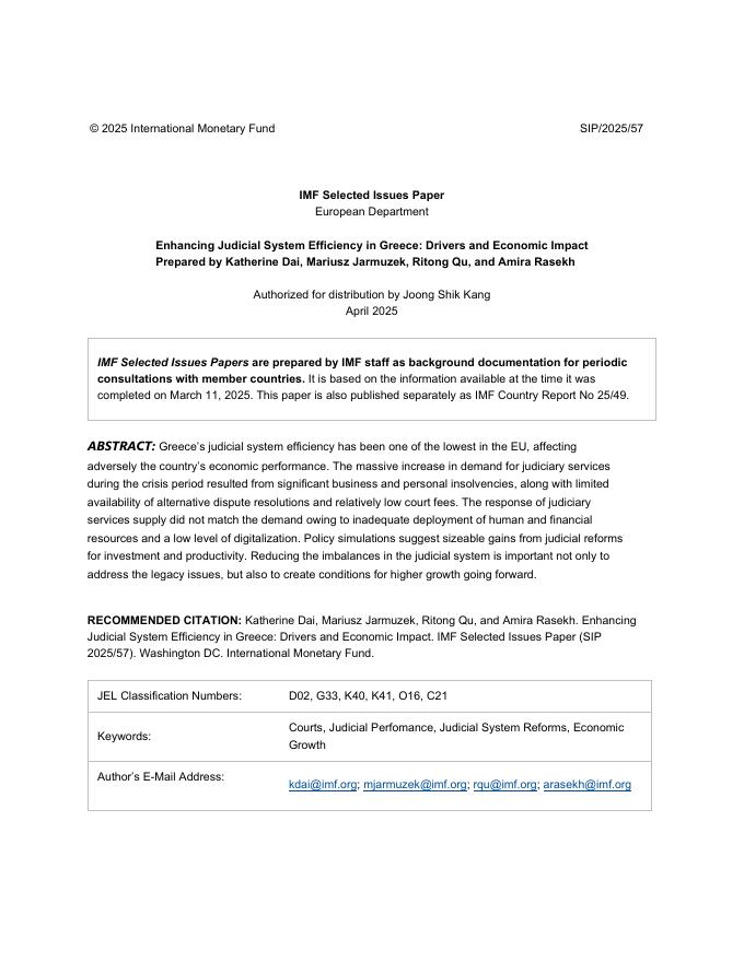 国际货币基金组织:提升希腊司法系统效率:驱动因素与经济影响(英文版).pdf