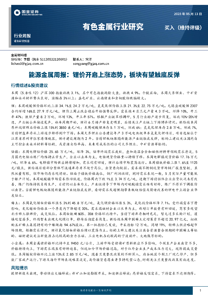 国金证券:能源金属周报:锂价开启上涨态势,板块有望触底反弹.pdf