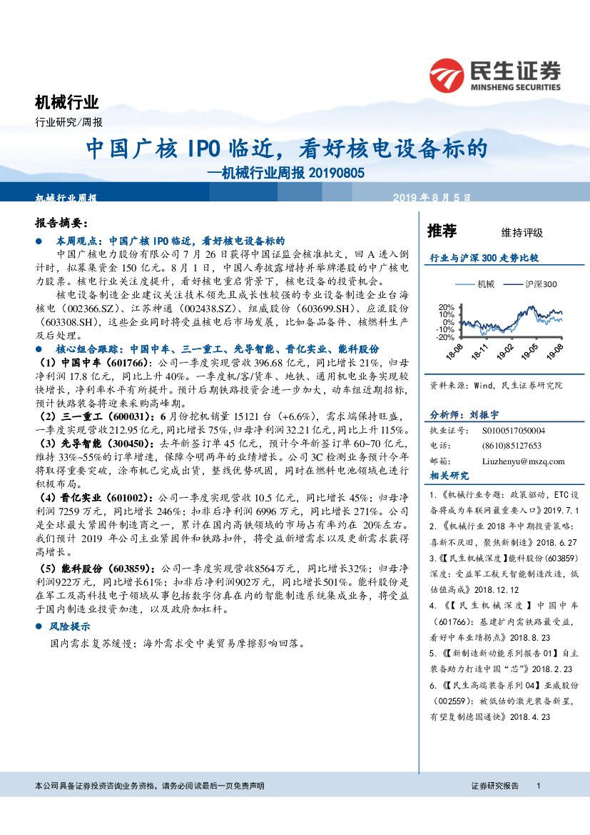 民生证券:机械行业周报:中国广核IPO临近,看好核电设备标的.pdf