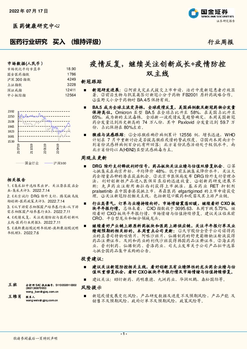国金证券:医药行业研究:疫情反复,继续关注创新成长+疫情防控主线.pdf