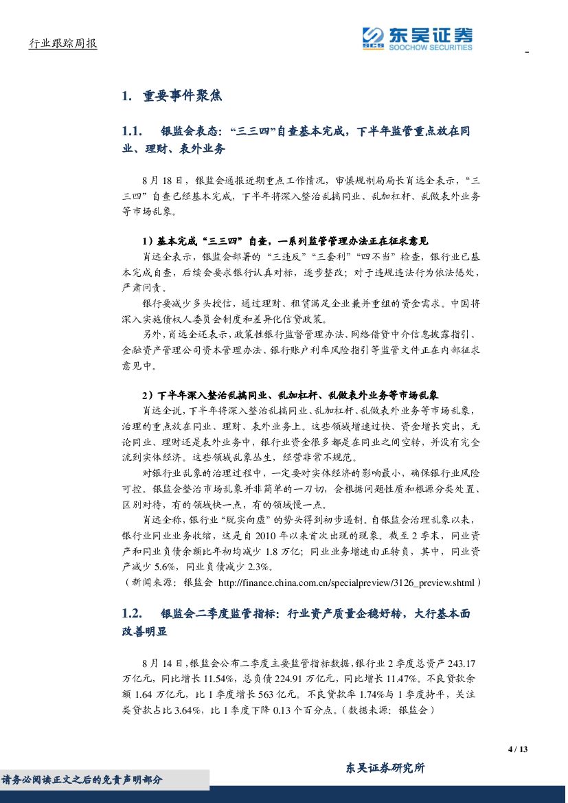 东吴证券:银行行业周报:“三三四”自查基本完成,银监会表态下半年监管重点.pdf