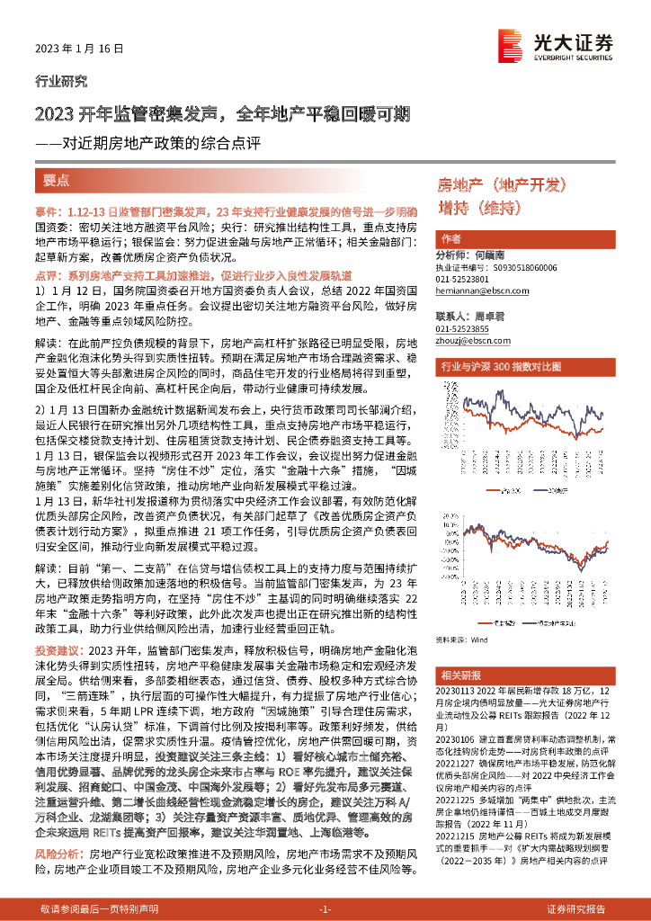 光大证券:对近期房地产政策的综合点评:2023开年监管密集发声,全年地产平稳回暖可期.pdf