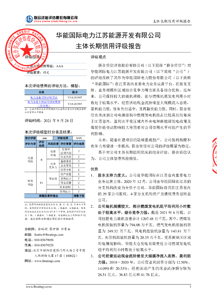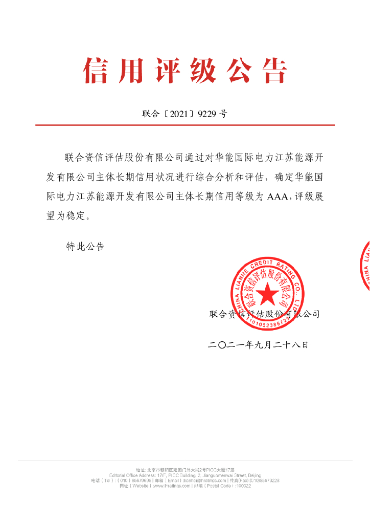 联合资信:华能国际电力江苏能源开发有限公司主体长期信用评级报告及跟踪评级安排.pdf