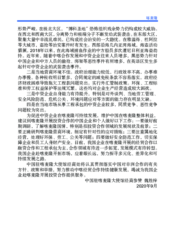 商务部:对外投资合作国别(地区)指南:喀麦隆(2020年版).pdf