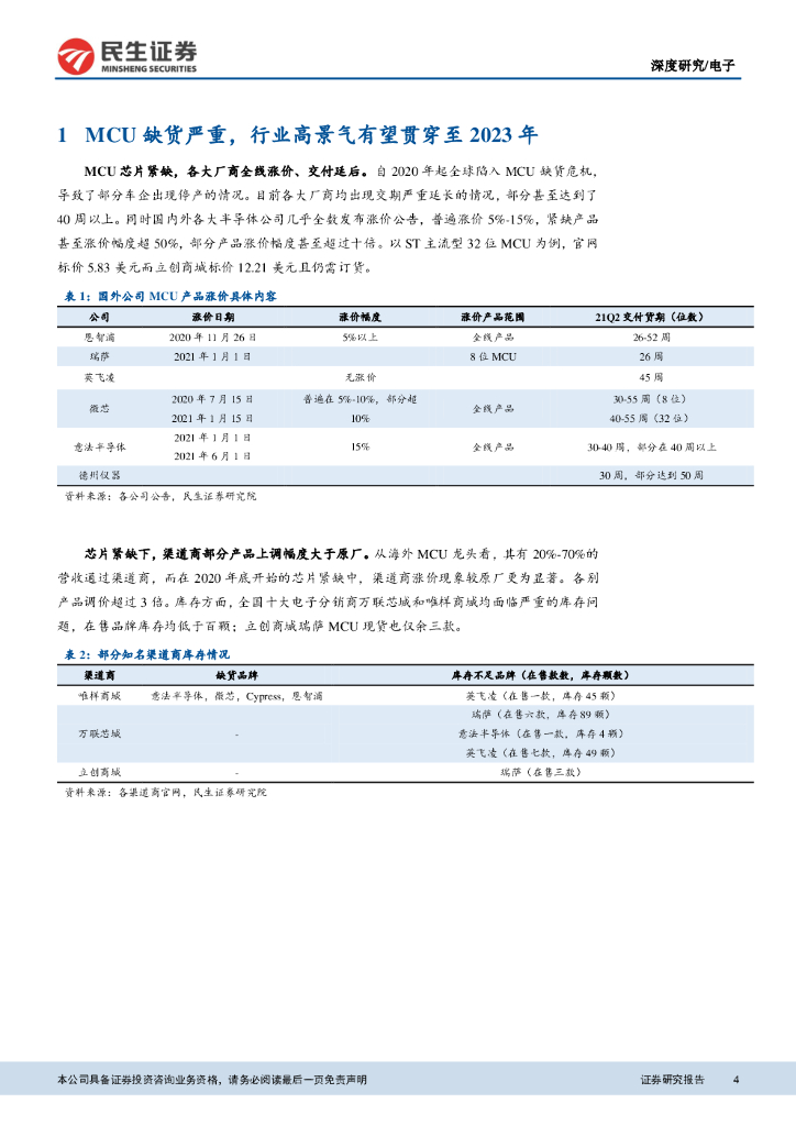 民生证券:半导体系列报告:MCU缺货潮加快国产替代进程,本土厂商迎发展机遇.pdf