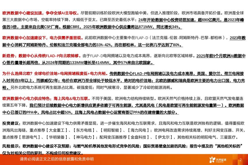 天风证券:电力设备行业专题研究:被忽视的欧洲AI缺电,重视欧洲特色海风&电力互联.pdf