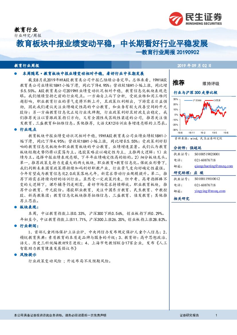 民生证券:教育行业周报:教育板块中报业绩变动平稳,中长期看好行业平稳发展.pdf