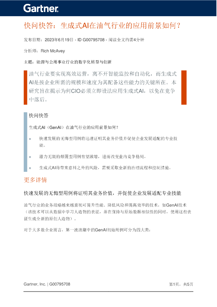 Gartner:2024快问快答:生成式AI在油气行业的应用前景如何报告.pdf