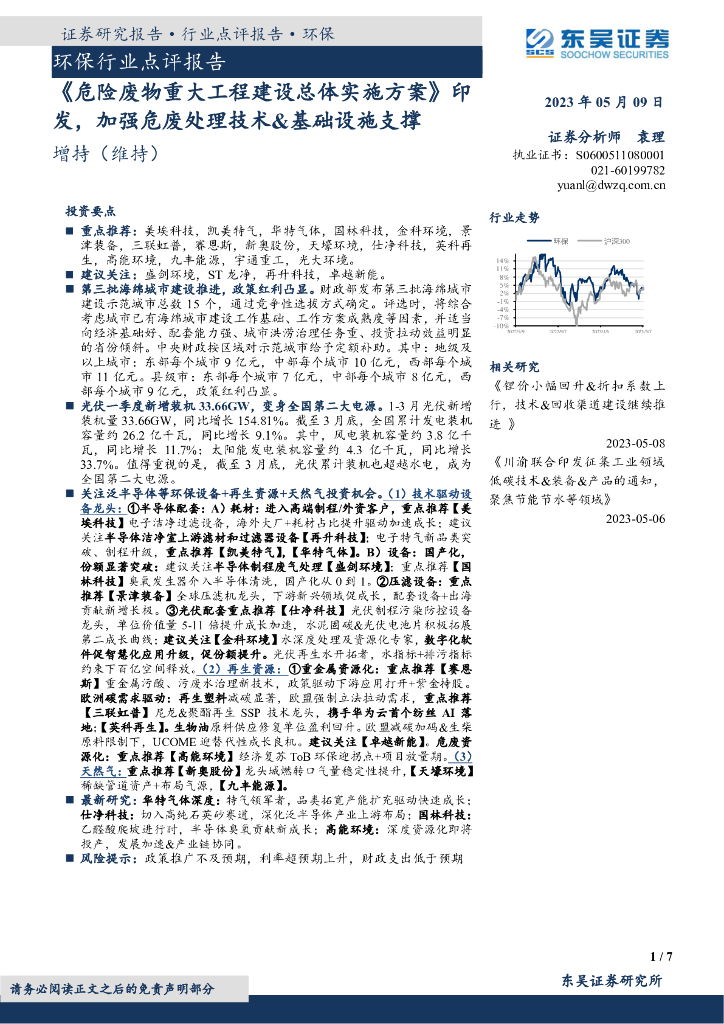 东吴证券:环保行业点评报告:《危险废物重大工程建设总体实施方案》印发,加强危废处理技术&基础设施支撑.pdf