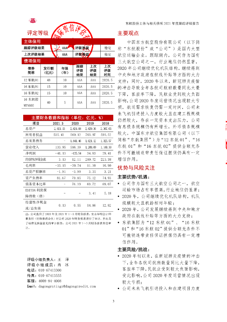 大公:中国东方航空股份有限公司主体信用评级报告及跟踪评价安排.pdf