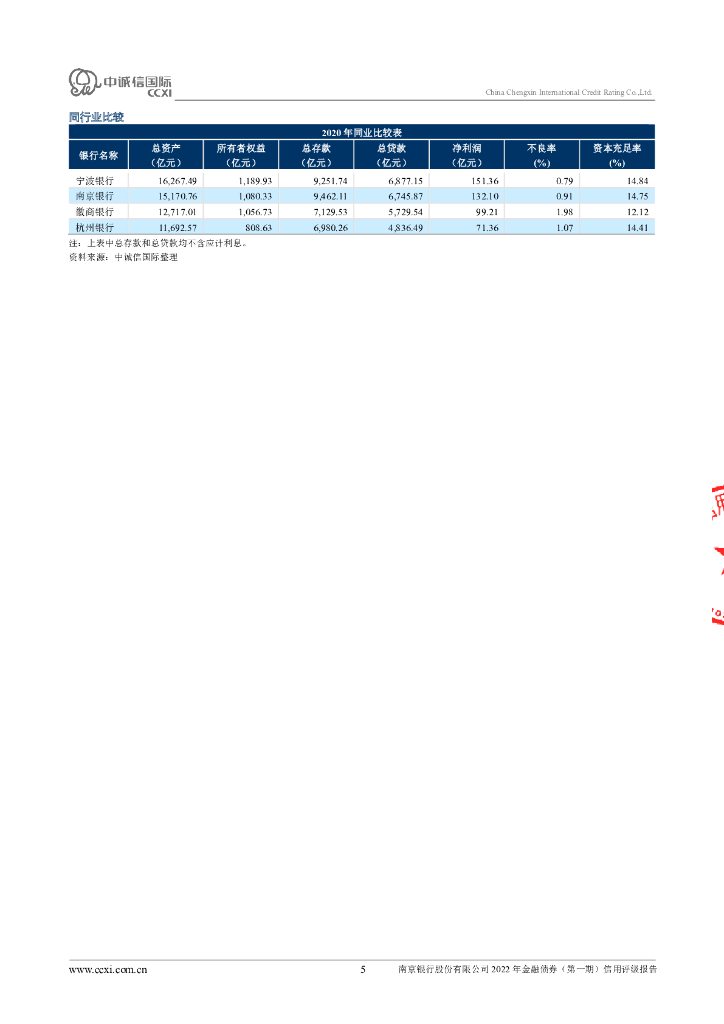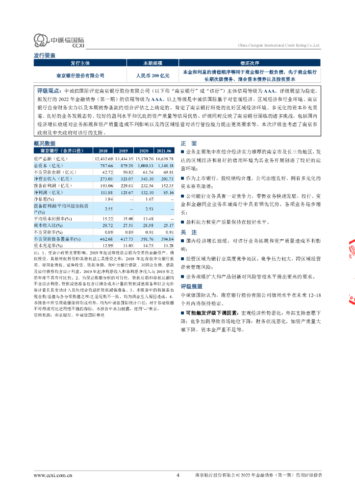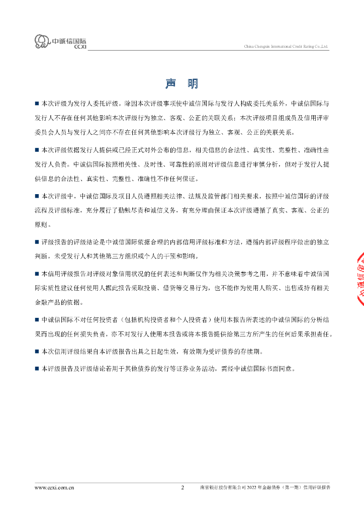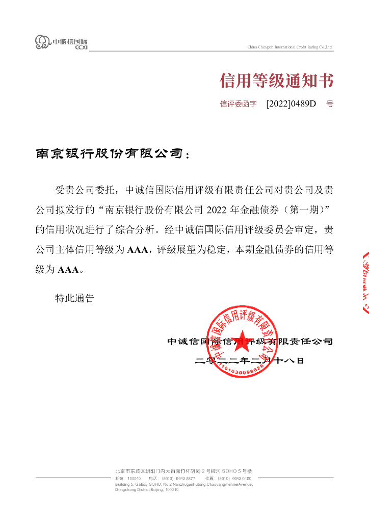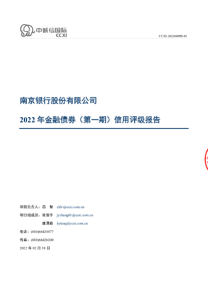中诚信:南京银行股份有限公司2022年金融债券(第一期)信用评级报告.pdf