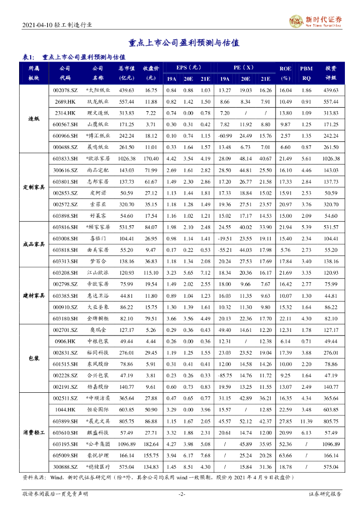 新时代证券:轻工制造行业投资周报:一季报陆续披露,看好造纸和家居业绩兑现.pdf