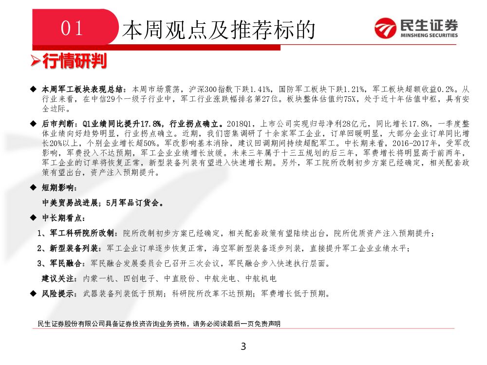 民生证券:国防军工行业周报:一季度业绩向好,行业拐点确认.pdf
