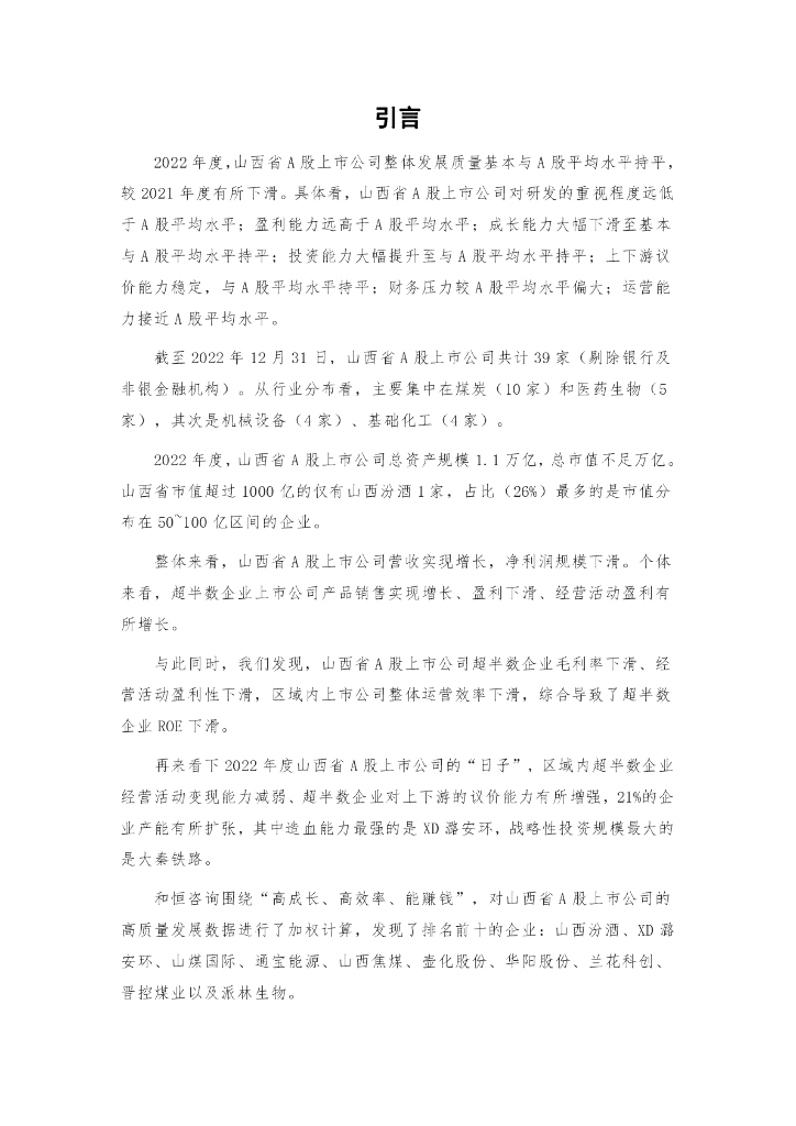 和恒咨询:山西省A股上市公司高质量发展报告(2022年报).pdf