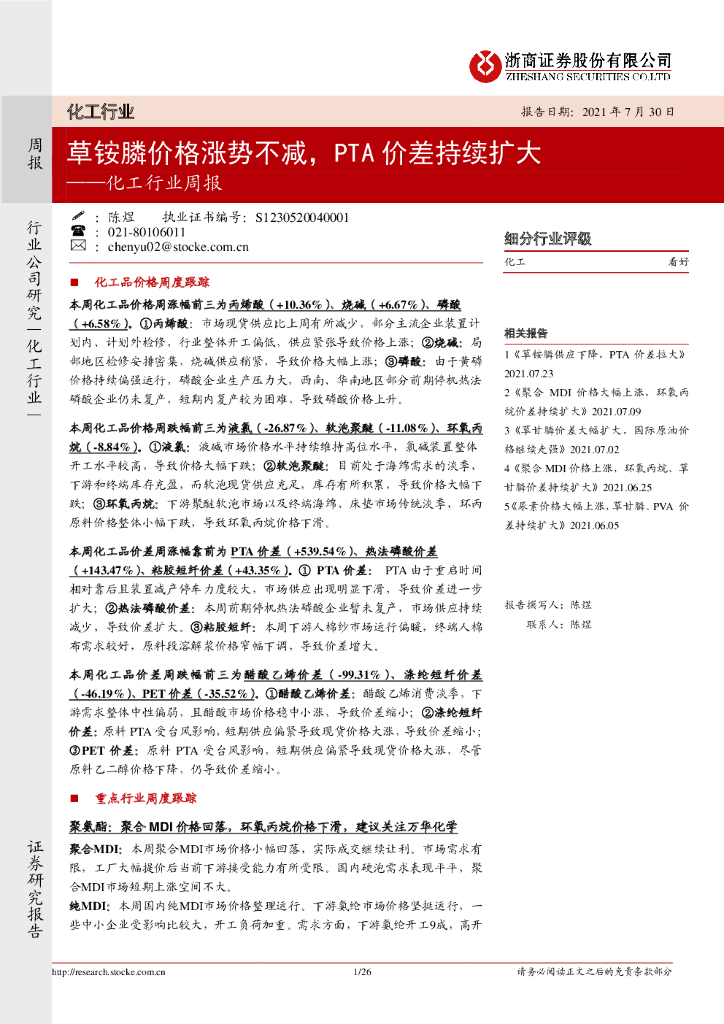 浙商证券:化工行业周报:草铵膦价格涨势不减,PTA价差持续扩大.pdf
