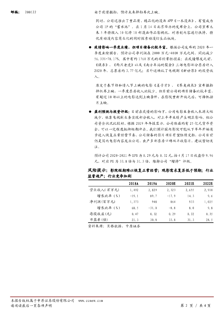 中原证券:光线传媒(300251)-年报点评:电影业务高增,加深布局动漫产业链.pdf