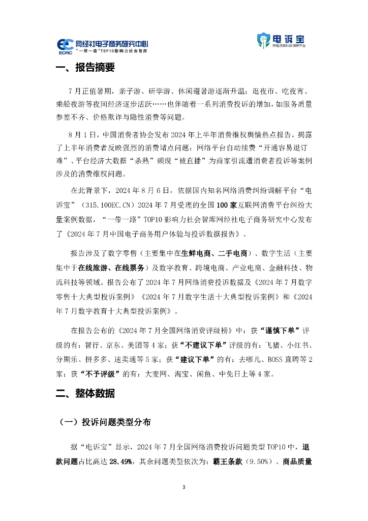 网经社:2024年7月中国电子商务用户体验与投诉数据报告.pdf