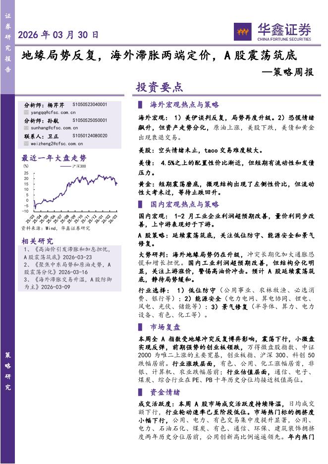 华鑫证券:策略周报:地缘局势反复,海外滞胀两端定价,A股震荡筑底-260331.pdf