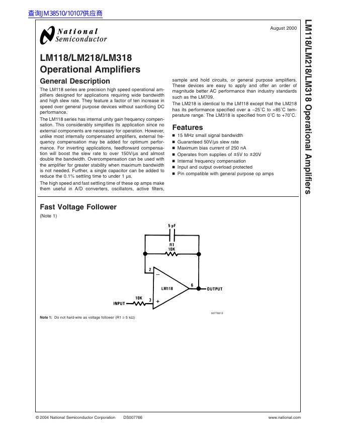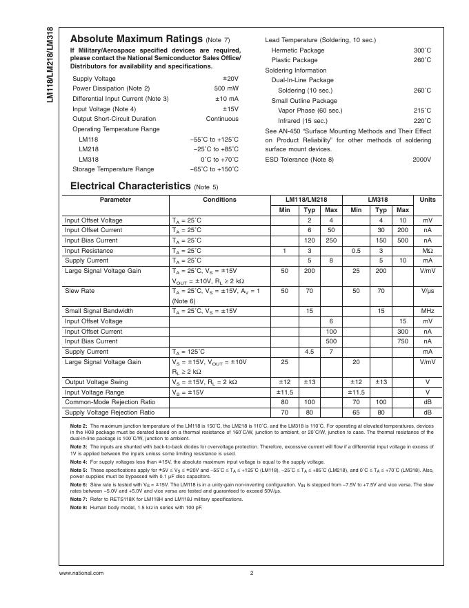 National Semiconductor LM118/LM218/LM318 Operational Amplifiers 数据手册.pdf