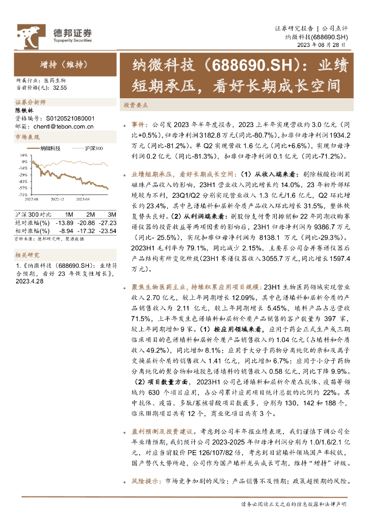 德邦证券:纳微科技(688690)-业绩短期承压,看好长期成长空间.pdf